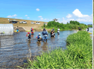 会場付近の川は浅瀬で澄み切っており、参加した子ども達は川遊びに夢中で、暑さを吹き飛ばしていました。