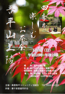 11月30日(日)午前10時~午後2時まで吾平山陵公園で「吾平山上陵四季を楽しむお茶会が開催されます。