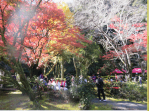 当日は天気も良く、参加された方は、鮮やかな紅葉の下でお茶(抹茶)とお菓子を楽しまれていました。
